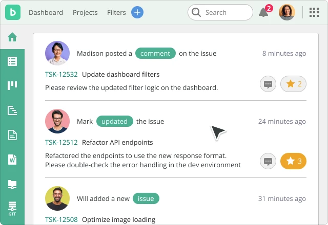 “Backlog has many useful features that are very helpful and make it a fundamental software for my work. For example, I like the function [to] clone a repository and access its source code. I also like being able to add different reviewers and be able to approve their modifications or updates.”