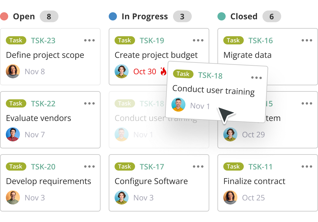 Kanban-style boards let you visualize the status of all issues quickly and stop bottlenecks in their tracks.