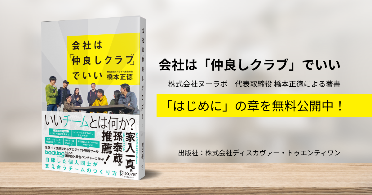 会社は「仲良しクラブ」でいい – 橋本正徳のはじめてのビジネス書が、ディスカヴァー・トゥエンティワン様から出版されます #ヌーラボ仲良し本