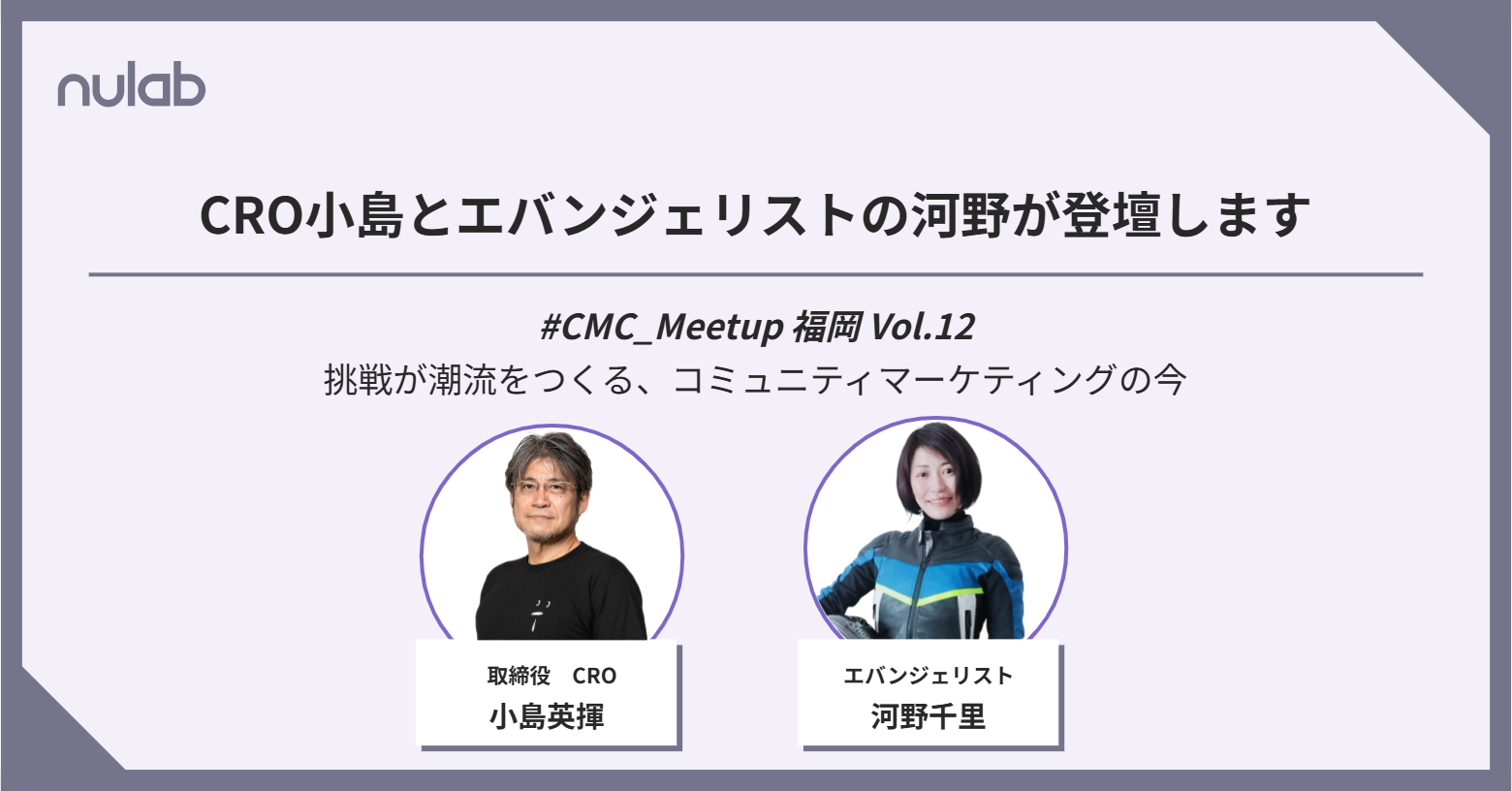 ヌーラボの取締役 CRO小島英揮とエバンジェリストの河野が、2025年9月26日(金)に開催されるイベント「#CMC_Meetup 福岡 Vol.12」に登壇します。