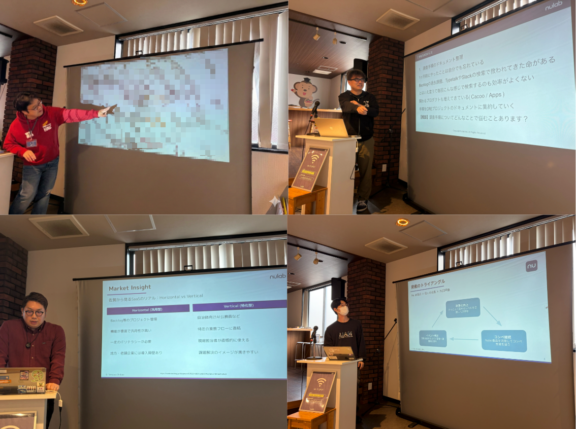 そこで今回、一人5〜10分のLT(ライトニングトーク)を行いました。