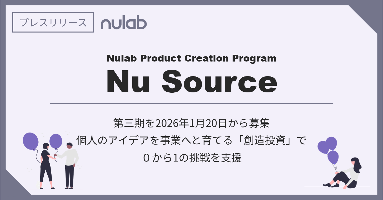 株式会社ヌーラボ(本社:福岡県福岡市、以下 ヌーラボ)は、新規事業創出プログラム「Nu Source(ヌーソース)」の第三期 事業アイデア募集を2026年1月20日(火)から開始します。2025年2月に始動した第一期、同年9月から募集した二期では、社内外から累計65件のエントリーがあり 、現在1件のプロジェクトがプロトタイプ開発フェーズに進み 、事業化に向けた具体的な動きが進んでいます。