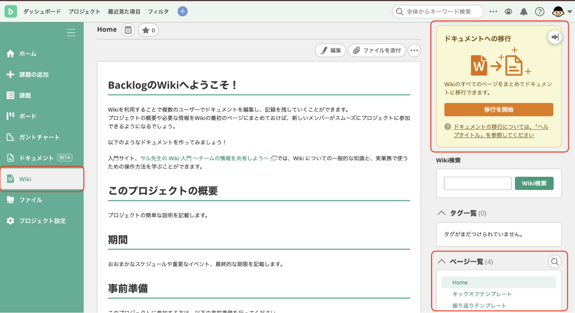 なお、現在のWiki機能については、将来的にドキュメント機能へ統合する計画です。統合時期の詳細については、決定次第あらためてご案内します。