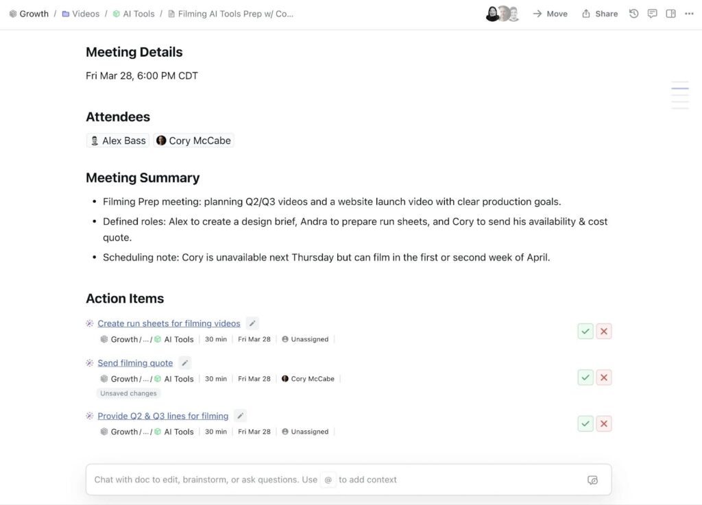 - AI-powered drafting & summarization: turn docs, transcripts, and data into actionable tasks