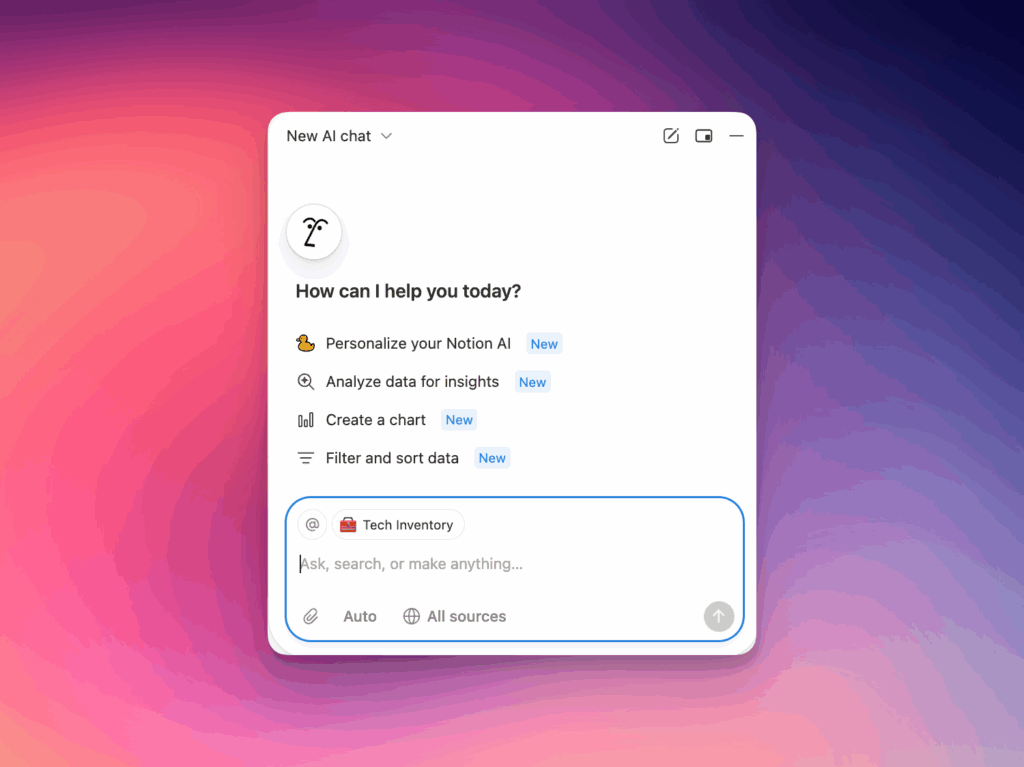 Notion’s AI assistant helps you stay on top of work by summarizing info, generating insights, and turning ideas into actionable tasks. You can even set up Custom Agents to handle things like monitoring Slack channels, triaging feedback, drafting reports, or managing recurring tasks.
