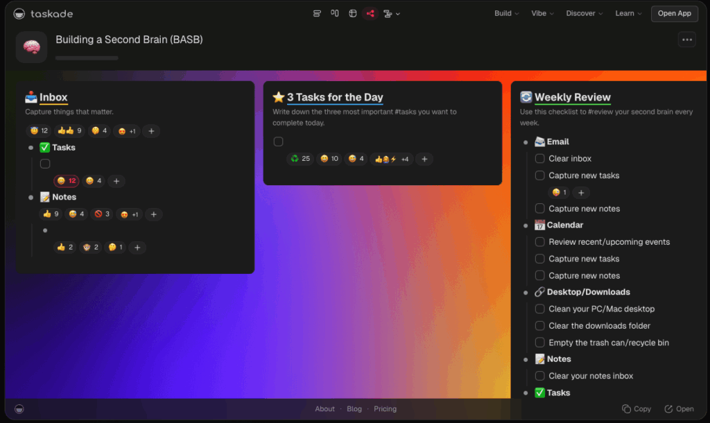 Taskade is a strong choice if you’re looking for a lightweight, AI-powered project management platform that combines task tracking, real-time collaboration, and AI assistance in one place. It’s quicker to get started than many other tools, especially if your projects are more creative or loosely structured.