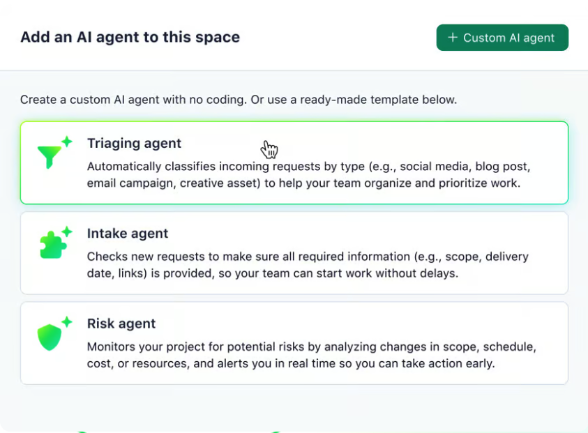 - AI agents can monitor risks in projects, and help with intake and triaging