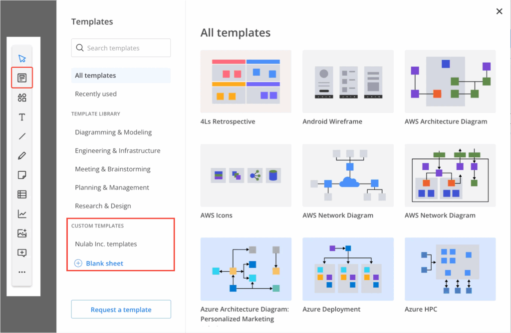 Want to combine multiple systems, layers, or flows in one board? Cacoo supports adding multiple templates: