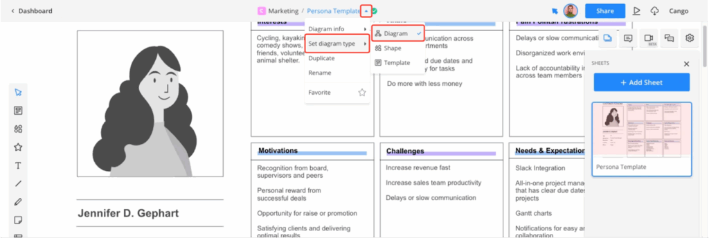 Use the top nav dropdown to switch it from “Template” to “diagram.”
