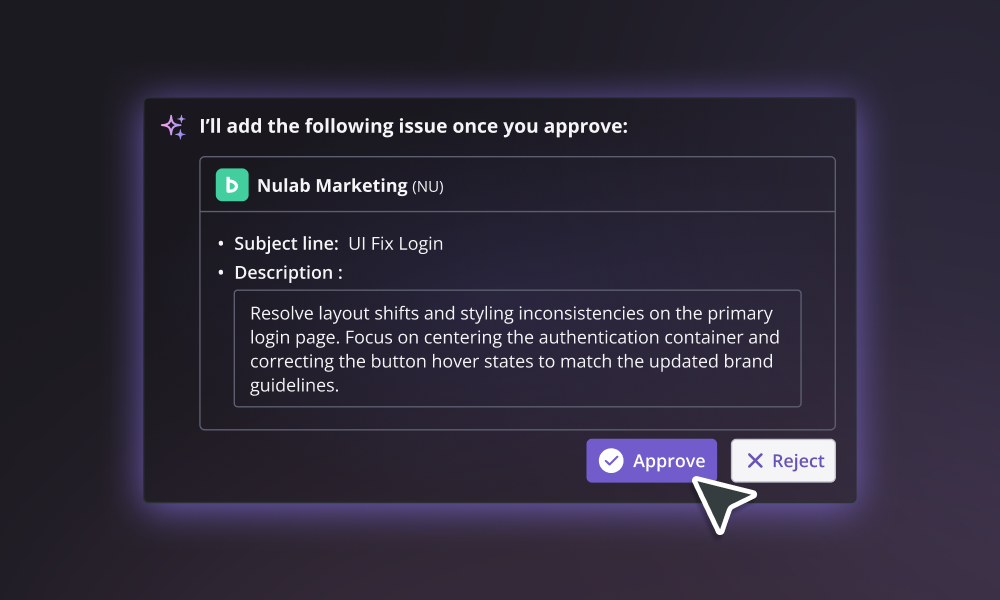 Create tasks from rough notes or planning discussions Edit and refine issue descriptions for clarity Update task details quickly without breaking your flow