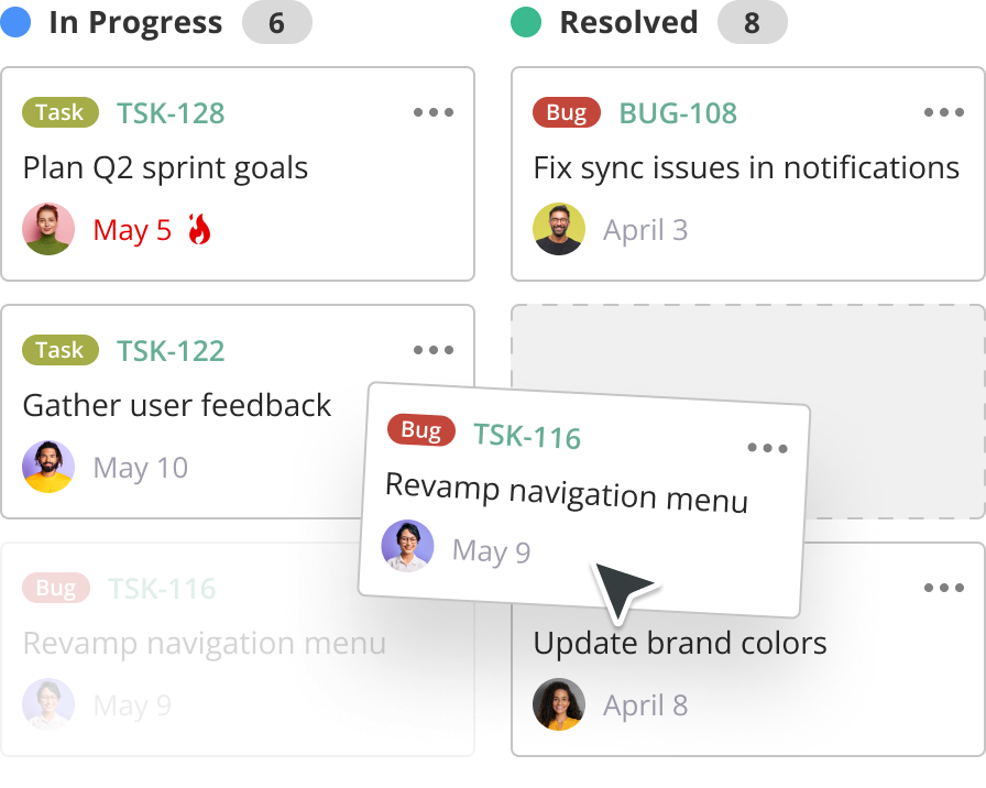 Drag and drop to reorganize cards and streamline your flow.