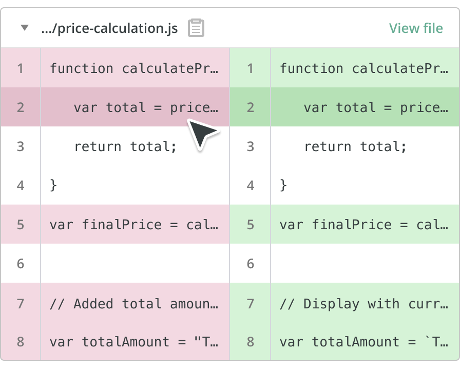 The difference viewer lets you quickly compare branches before merging.