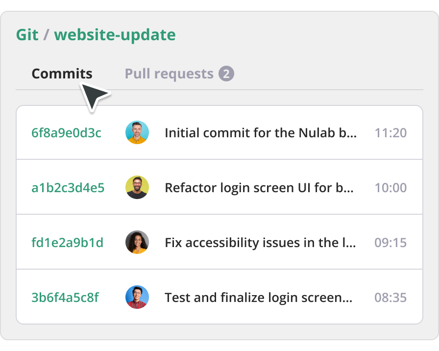 Get a full list of commits that have happened in your project to monitor changes.